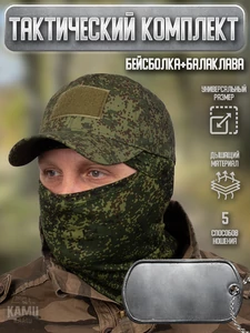 Комплект тактических головных уборов. Камуфляжная бейсболка BBC с камуфляжной балаклавой Цифра зеленая. Бейсболка BBC тактическая: Ткань рип-стоп 65% полиэстер, 35% хлопок. 3 места для крепления шевронов: на лбу, на макушке и на затылке. Размер места для крепления: на лбу 8Х5 см, на макушке 2,5Х2,5см, на затылке прямоугольный 9Х2,5 см. Размеры: 57-60. Спортивный Тип: Охота, рыбалка, туризм, поход. Балаклава-трансформер с одним вырезом. Камуфляжная балаклава из 100% хлопка. Маска-балаклава закрывает лицо почти полностью, надежно защищая кожу от внешних воздействий, прекрасно пропускает воздух, впитывает влагу. Удлиненное горло балаклавы позволяет заправлять его за воротник верхней одежды. Размер: универсальный.