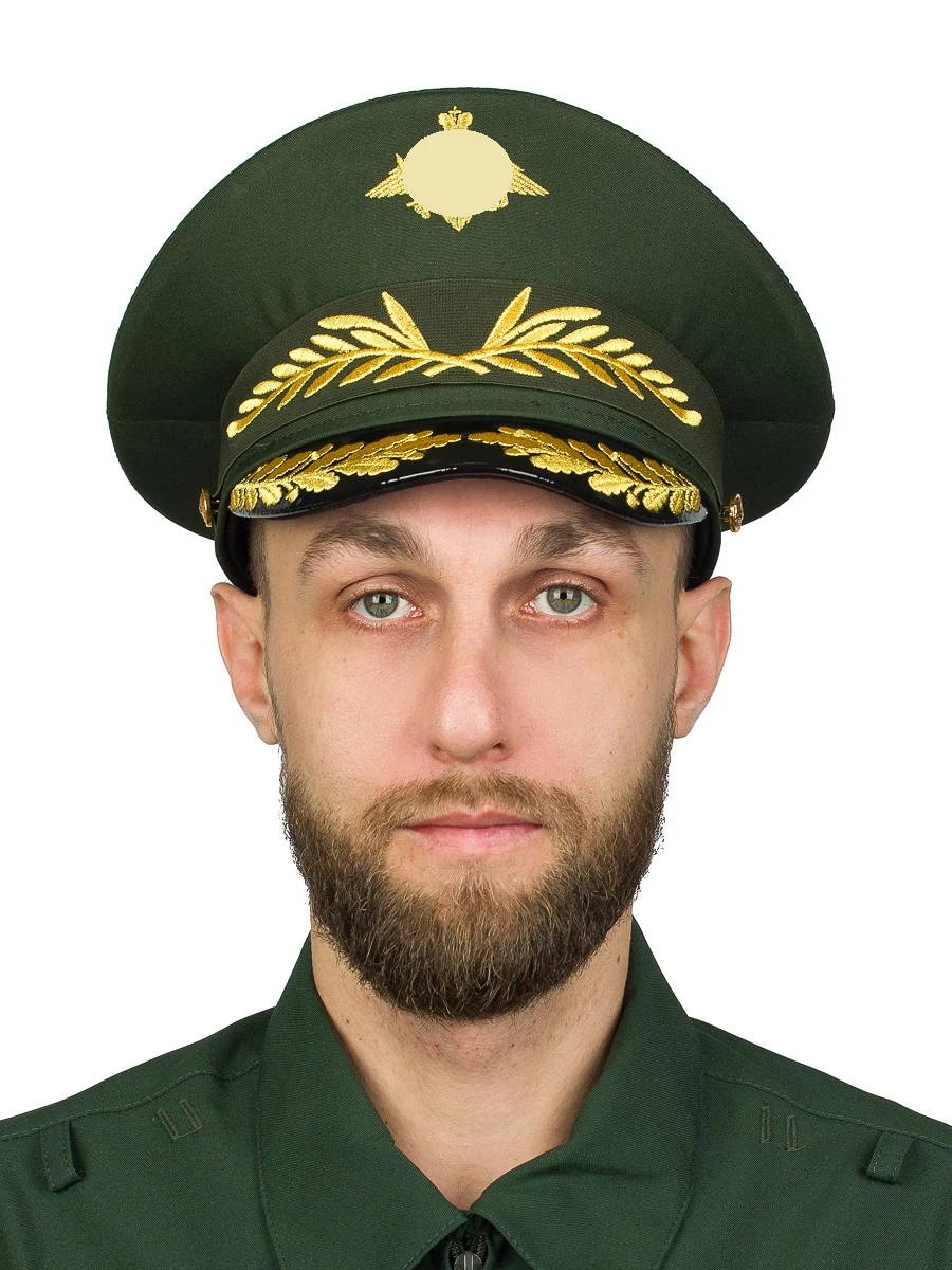 Фуражка (головной убор форменный) офисная Министерство обороны с золотой вышивкой зеленая. Фуражка МО офисная с вышивкой в дорогом, качественном исполнении, ручная работа. Состав ткани: рип стоп. Головной убор подобного качества будет превосходным подарком на день рождения, либо другие праздничные даты. Размерная сетка предусмотрена от 55 до 60см.