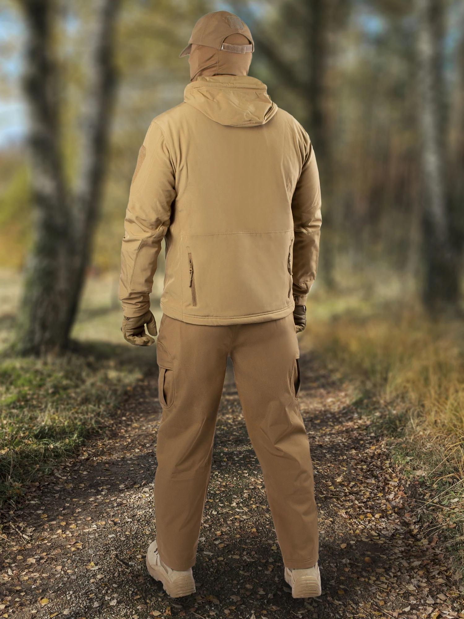 Костюм демисезонный на толстом флисе тактический военный с капюшоном Shark Skin Soft Shell. Костюм состоит из куртки и брюк. Все остальное в комплект не входит. Размерная сетка на фото. Тактический костюм Shark Skin Soft Shell на толстом флисе для активных видов спорта или экстремальных погодных условий. Softshell − это ткань с многослойной конструкцией, внешний слой которой состоит из полиэстера, а с изнанки − флис. Благодаря плотности ткани и тефлоновому покрытию внешней стороны вода просто скатывается с поверхности изделия а грязь легко удаляется. Материал не позволяет ветру продувать носителя, а пар изнутри с легкостью испаряется из-за специальных свойств ткани Shark Skin. Совокупность этих качеств позволяет одной вещи заменить два, а то и три слоя одежды, оставаясь при этом чрезвычайно легкой, мягкой, в меру эластичной и компактной - в сложенном состоянии она занимает совсем немного места. Характеристики: Куртка широкая, низ можно утянуть с помощью ластичного шнура с фиксатором. Задняя часть куртки удлинена для защиты поясницы. Куртка имеет 6 карманов (2 больших нагрудных, 3 на рукавах, 1 большой задний карман на 2 молниях). Центральная застежка куртки на молнию, так же как и застежки карманов. Капюшон с козырьком и утяжкой. Высота капюшона 20 см. Усиление на локтях. На каждом из рукавов имеются места для крепления патчей. Брюки плотно сидят по фигуре (почти обтягивают). Брюки имеют 4 кармана (2 поясных на молнии, 2 боковых на липучках). Центральная застежка на пуговицу, ширинка на молнии. 4 шлевки под ремень, пояс шириной 4 см. Низ брюк не регулируется.