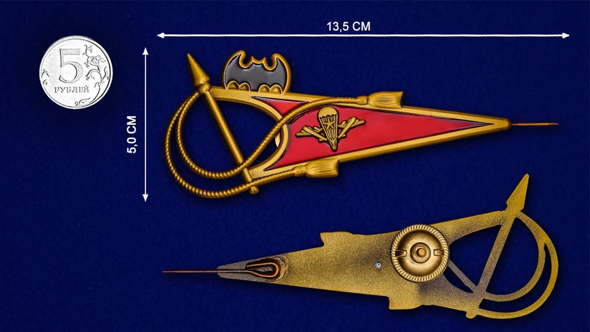 Характеристики Размер 5,0x13,5 см. Крепление Винтовое. Металл Латунь, холодная эмаль.- Одежда