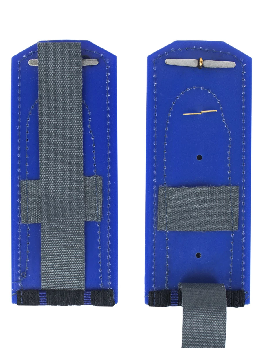 Размер 14 см на 5,5 см. Толщина 1 мм. Погоны ФСБ ткань жаккард темно-синего цвета с зеленым просветом на пластиковой основе. Погоны идут сразу в сборе с металлической фурнитурой из латуни и застежкой кляммером. При креплении жестких погон необходимо использовать застежку-кляймер. Необходимо продеть ленту погона в специальные петли на уставной форме.