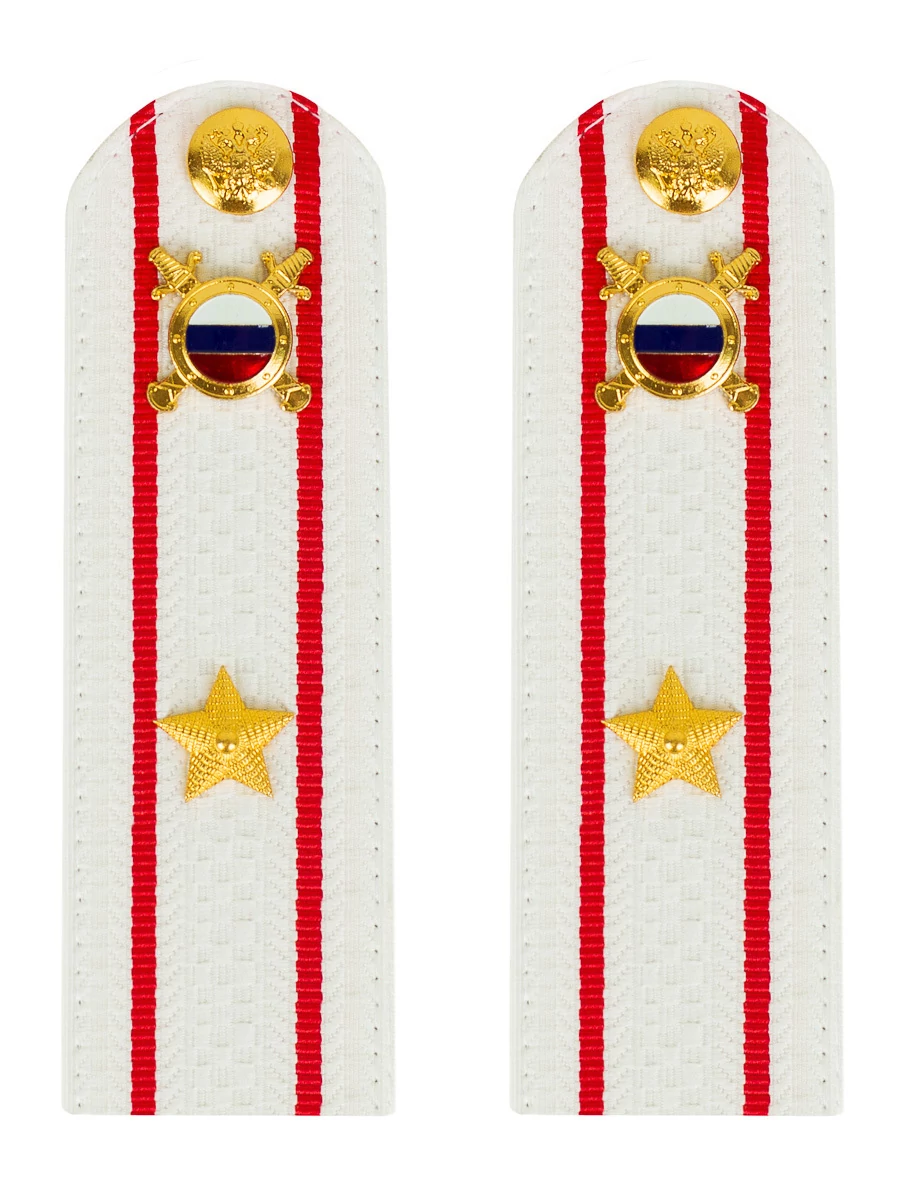 Размер 13,5 см на 4,5 см. Толщина 1 мм. Погоны МВД белые ткань жаккард белого цвета, основа пластик. Погоны идут сразу в сборе с металлической фурнитурой из латуни и застежкой кляммером. При креплении жестких погон необходимо использовать застежку-кляймер. Необходимо продеть ленту погона в специальные петли на уставной форме.