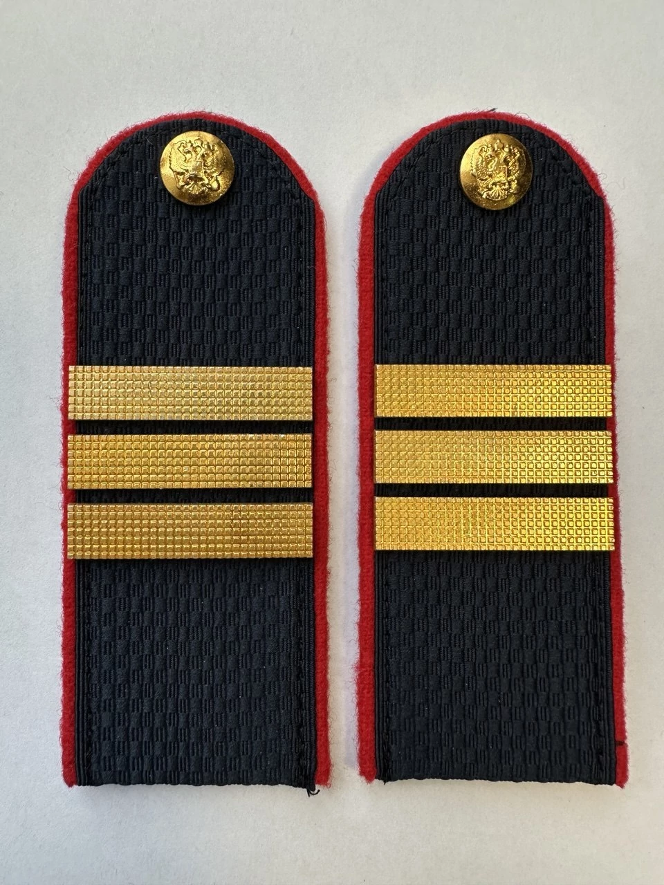 Погоны МВД темно-синие ткань жакард цвета, основа картон. Погоны идут сразу в сборе с металлической фурнитурой из латуни и застежкой кляммером. При креплении жестких погон необходимо использовать застежку-кляймер. Необходимо продеть ленту погона в специальные петли на уставной форме.