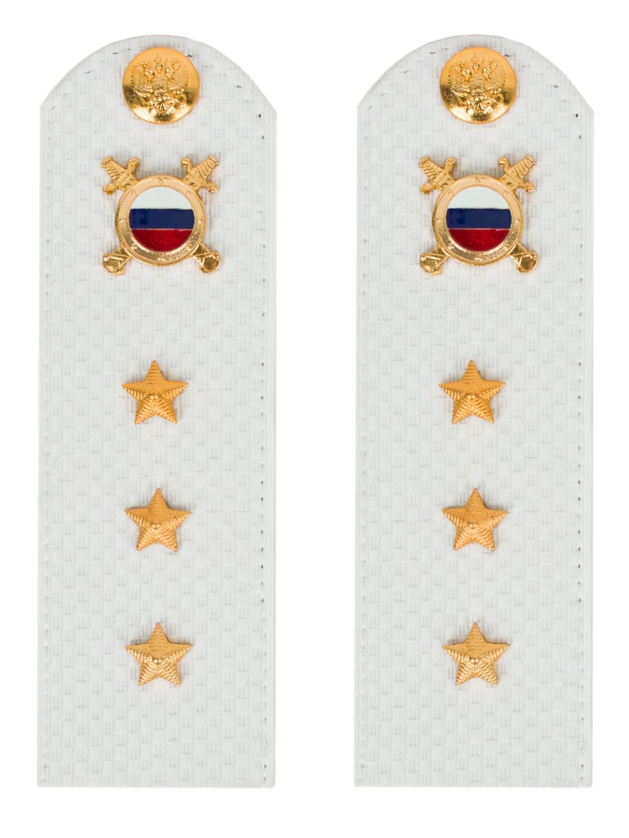 Размер 15 см на 5,5 см. Толщина 1 мм. Погоны МВД белые ткань жаккард белого цвета, основа картон. Погоны идут сразу в сборе с металлической фурнитурой из латуни и застежкой кляммером. При креплении жестких погон необходимо использовать застежку-кляймер. Необходимо продеть ленту погона в специальные петли на уставной форме.