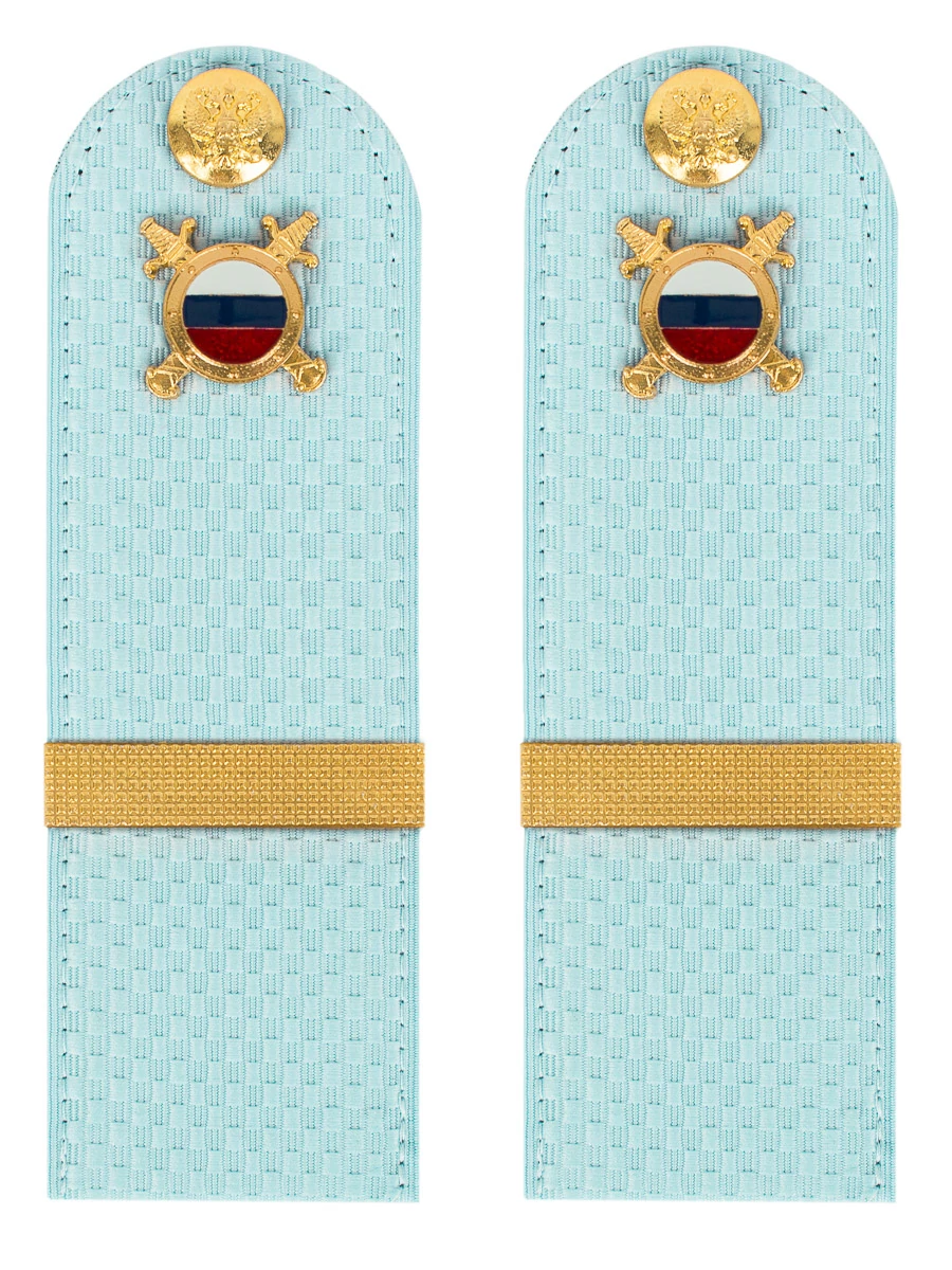 Размер 15 см на 5,5 см. Толщина 1 мм. Погоны МВД ткань жаккард голубого цвета, основа картон. Погоны идут сразу в сборе с металлической фурнитурой из латуни и застежкой кляммером. При креплении жестких погон необходимо использовать застежку-кляймер. Необходимо продеть ленту погона в специальные петли на уставной форме.