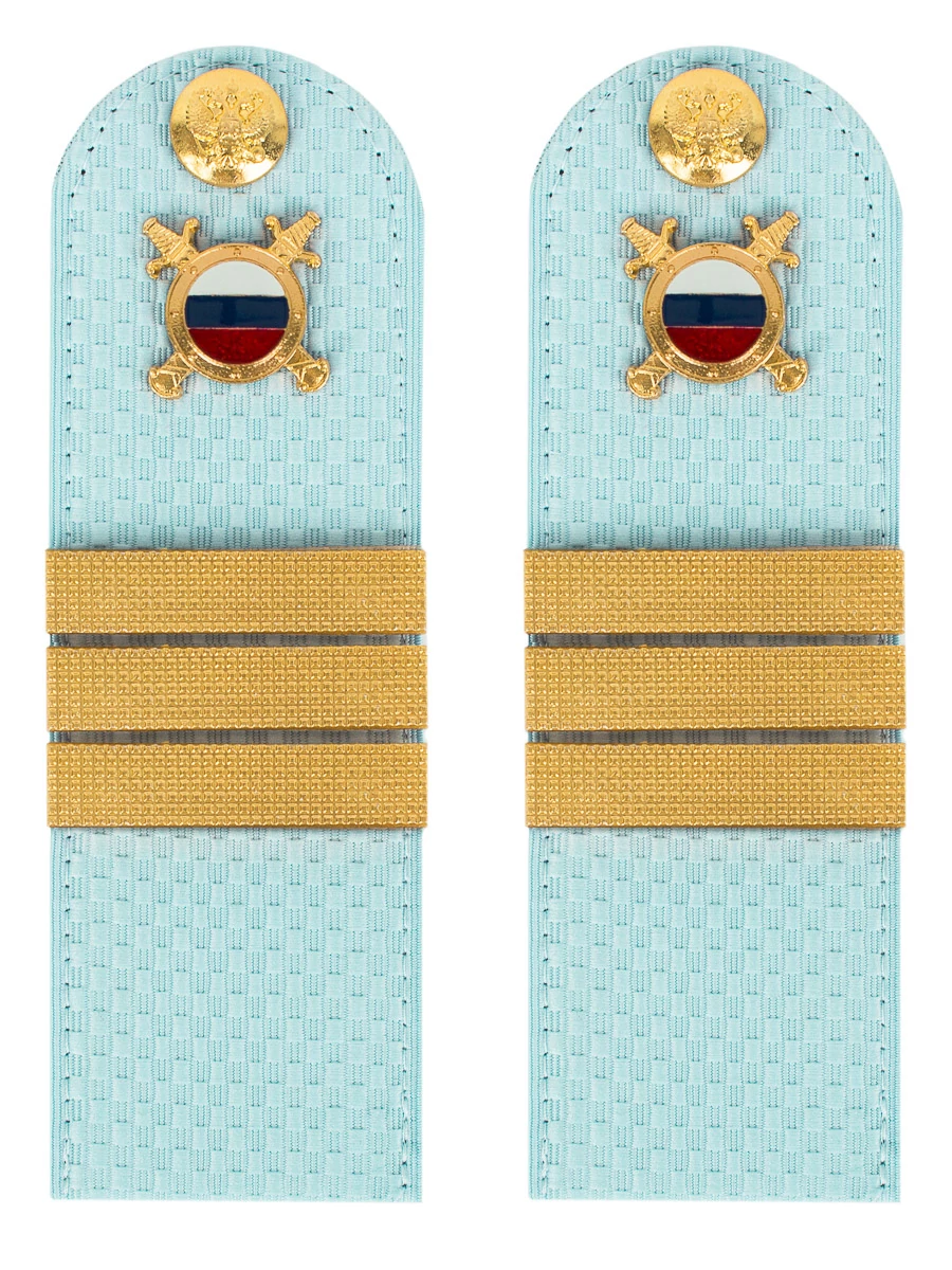 Размер 15 см на 5,5 см. Толщина 1 мм. Погоны МВД ткань жаккард голубого цвета, основа картон. Погоны идут сразу в сборе с металлической фурнитурой из латуни и застежкой кляммером. При креплении жестких погон необходимо использовать застежку-кляймер. Необходимо продеть ленту погона в специальные петли на уставной форме.