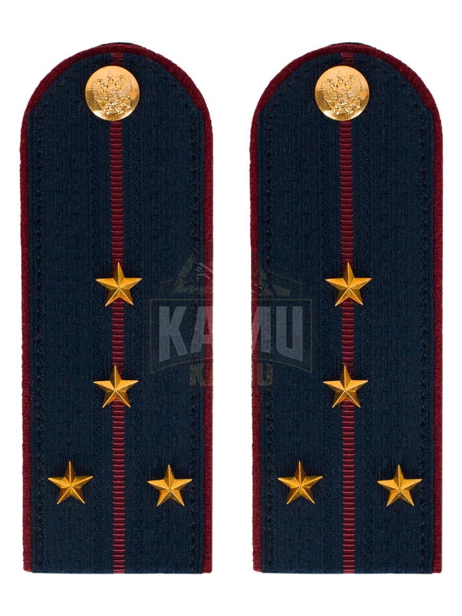 Размер 13 см. Погоны ФСИН ткань жаккард темно-синего цвета с зеленым просветом на картонной основе. Погоны идут сразу в сборе с металлической фурнитурой из латуни и застежкой кляммером. При креплении жестких погон необходимо использовать застежку-кляймер. Необходимо продеть ленту погона в специальные петли на уставной форме.