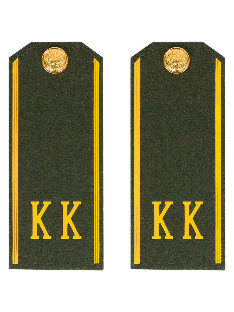 Погоны Кадетский корпус КК, суконные с фурнитурой в комплекте. Форма погон: Трапеция. Поле: Зеленое. Длина: 13,5 см. Ширина: 5 см. Материал: Сукно, плотный картон ,пластизоль. Курсантские погоны КК для Минобрнауки подходят как к форме кадетов для мальчиков, так и к форме кадетов для девочек. Основные характеристики: зеленые погоны КК, длинна изделия составляет 12 см; при изготовлении применяется пластизоль; имеют высокий уровень износостойкости; многоразовое использование; со временем не меняют цвет и уровень прочности; нанесена надпись “КК” и две линии по бокам желтого цвета; имеют форму шестиугольника.