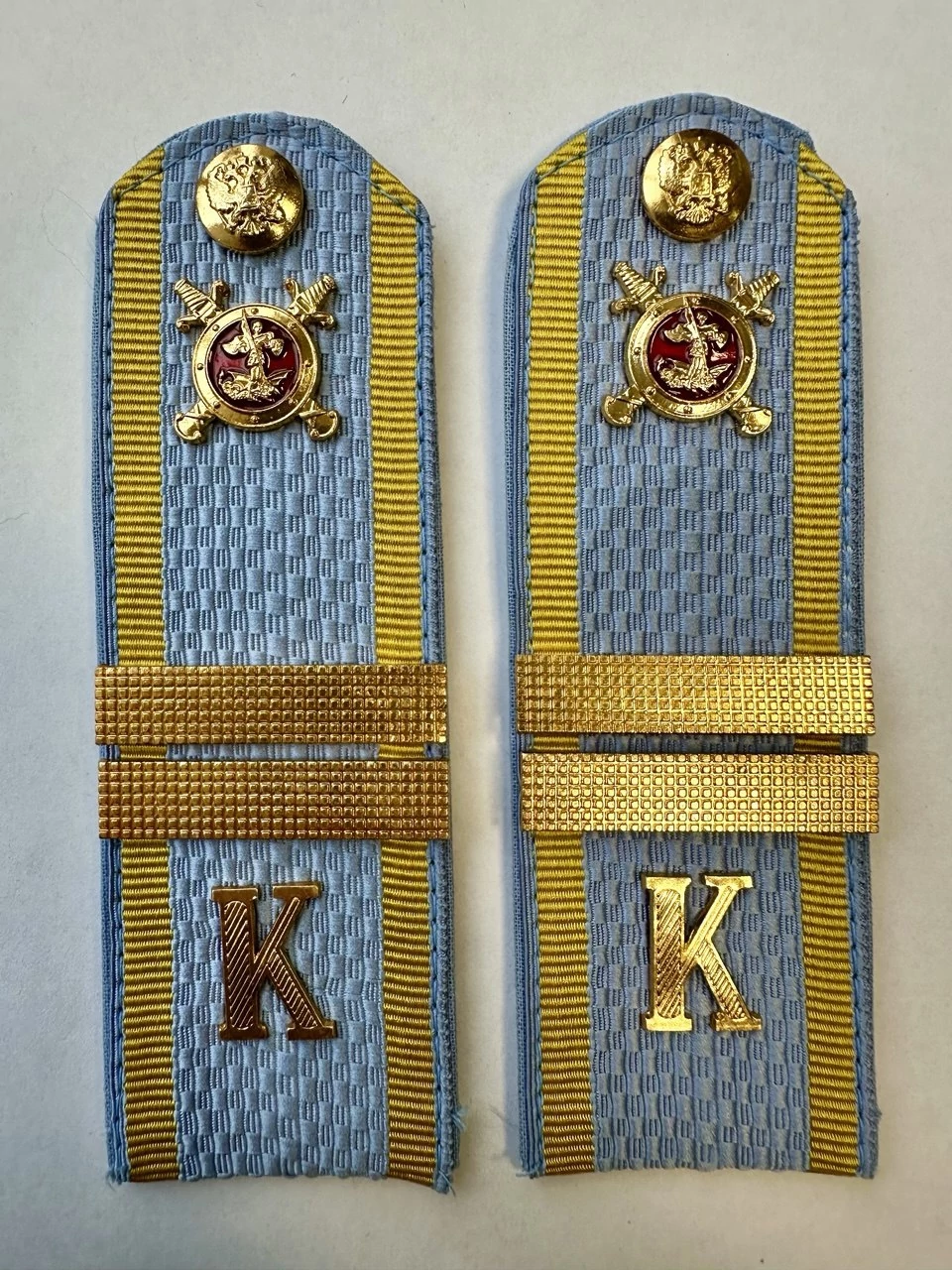 Погоны Курсант Полиции в сборе с фурнитурой Младший Сержант. Размер 13см, изготовлены в форме прямоугольника, верхние края которого закруглены. Подложка выполнена из картона, который защищает изделия от деформации во время носки. Для крепления погон к форме на изнаночной стороне пришита шлевка из ткани.
