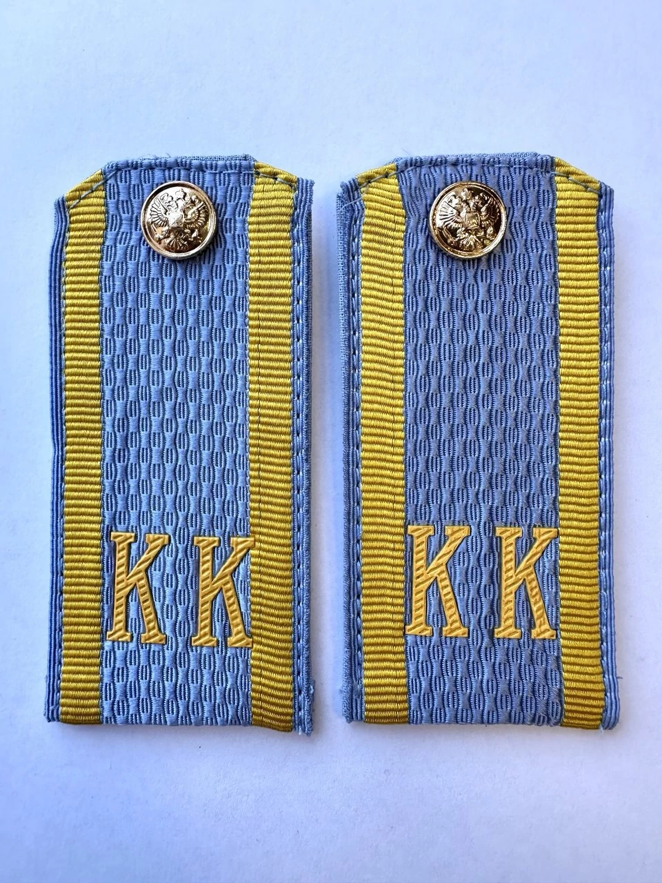 Погоны кадетские голубые КК 10,5 см картон, пуговица закреплена на погонах как на фото (реквизит).