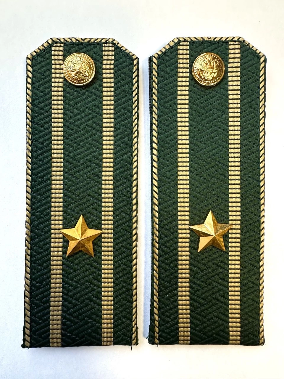 Погоны Таможенной службы на китель темно-зеленые звание Майор. Размер 14х5см. Погоны для Федеральной таможенной службы (ФТС) зеленые продаются в сборе с фурнитурой, готовы к использованию. Основа - картон. Способ крепления: с помощью специальных шлевок, через которые продевается лента погона с изнаночной стороны. Погоны ФТС нового образца, изготовлены согласно Приказа ФТС РФ от 23.11.2020 N 1005 "ОБ УТВЕРЖДЕНИИ ПОРЯДКА НОШЕНИЯ ФОРМЕННОЙ ОДЕЖДЫ ДОЛЖНОСТНЫМИ ЛИЦАМИ ТАМОЖЕННЫХ ОРГАНОВ РОССИЙСКОЙ ФЕДЕРАЦИИ".