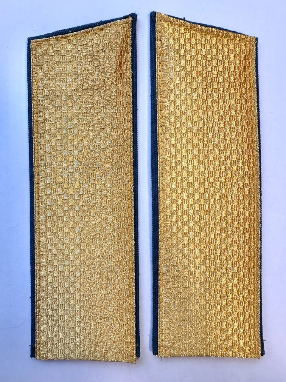 Погоны парадные золотого цвета для ФСБ рядовой состав с кляммерами в комплекте, верх - скос. Основа - картон Материал: вискоза,галун,шерсть Способ крепления: пришивной. Длина: 17 см
