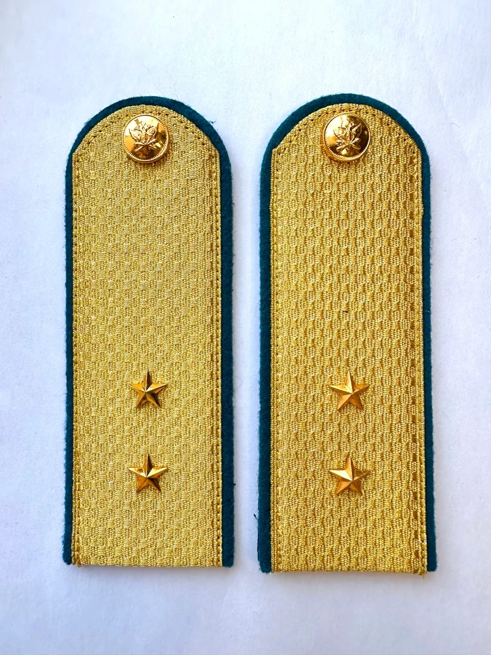 Погоны ФССП парадные золотые с фурнитурой звание Прапорщик Картон. Погоны изготовлены из погонной ленты золотого цвета с голубым кантом и просветами. Край "полукруг". Продаются парами ( 2шт). Погоны предназначаются для ношения Федеральной службой судебных приставов. Размер погон 14см.