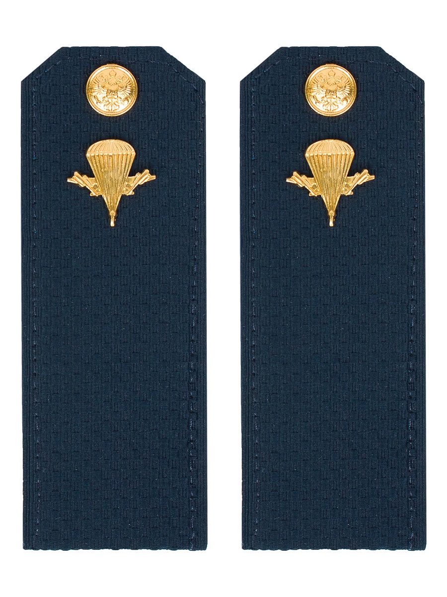 Погоны ВДВ с фурнитурой синие рядовой. Погоны полностью укомплектованы фурнитурой. Погоны ВДВ изготовлены из темно-синей ленты. С оборотной стороны имеются хлястики (полоски ткани) для быстрого крепления на куртку офисной (повседневной) формы. Если погоны будут пришиваться, то хлястик можно отрезать ножницами. На каждом погоне предусмотрено отверстие под пуговицу.