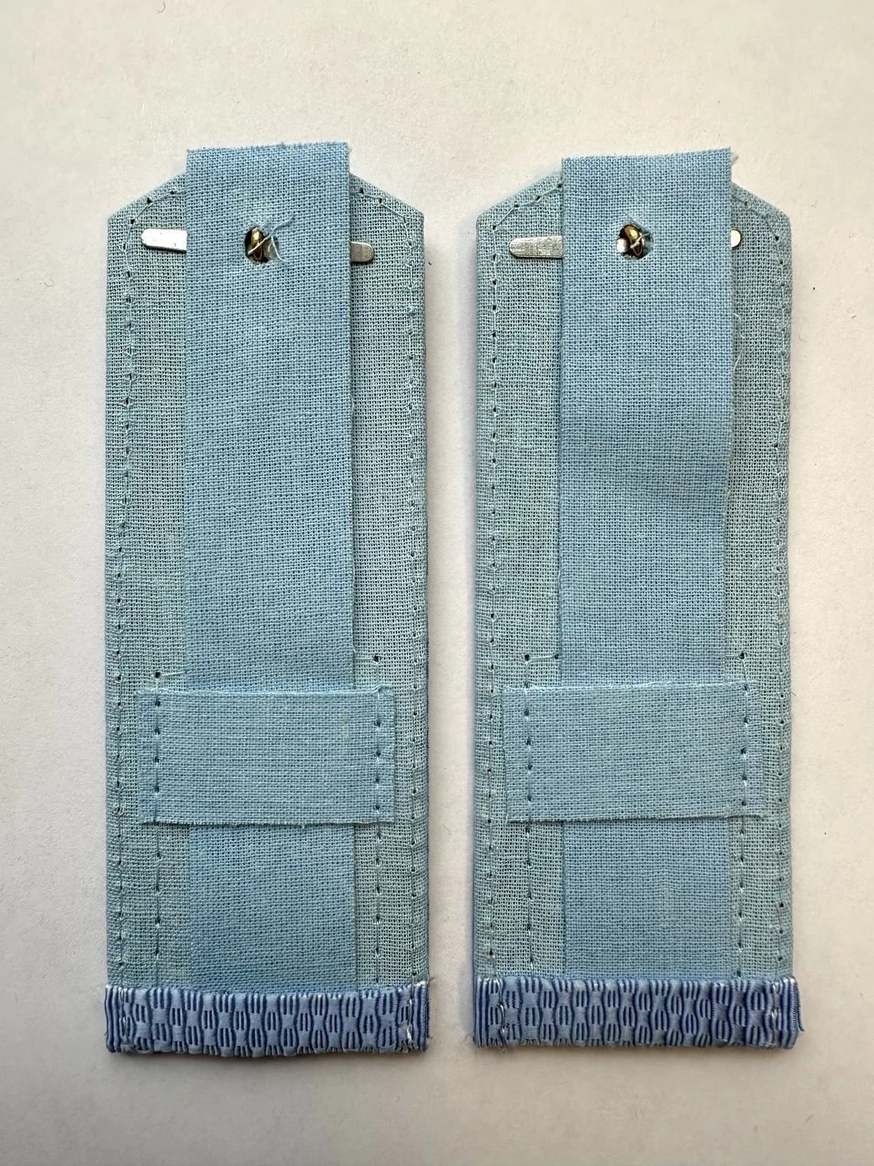 Погоны ВКС ВВС с фурнитурой голубые Старший Прапорщик . Погоны полностью укомплектованы фурнитурой. Погоны ВКС ВВС изготовлены из голубой ленты. С оборотной стороны имеются хлястики (полоски ткани) для быстрого крепления на куртку офисной (повседневной) формы. Если погоны будут пришиваться, то хлястик можно отрезать ножницами. На каждом погоне предусмотрено отверстие под пуговицу.