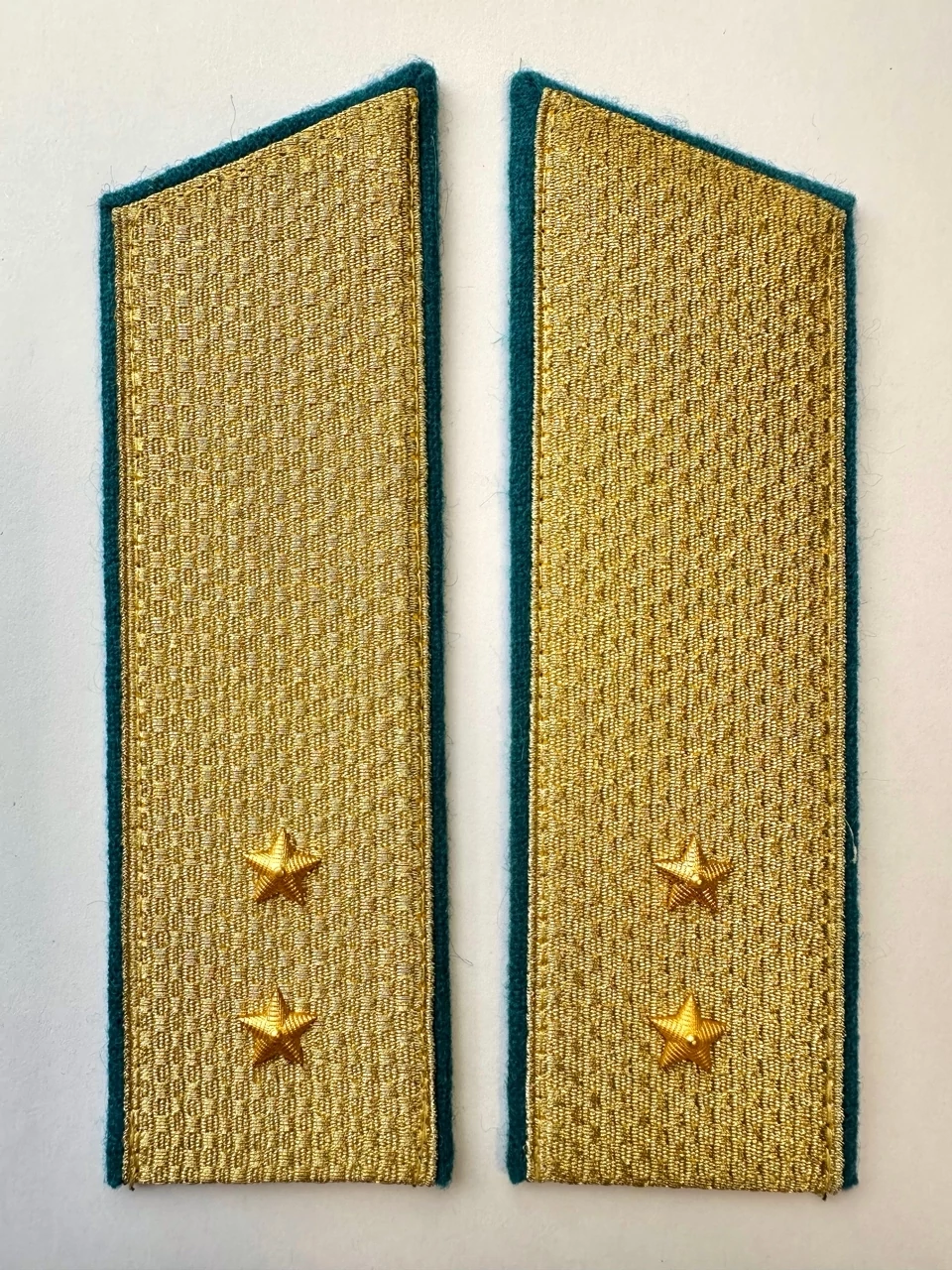 Погоны ВДВ, ВКС, ВВС парадные золотые с фурнитурой звание Прапорщик Картон 16,5х5,5см. В зависимости от партии погоны могут быть с хлястиком на оборотной стороне для крепления, либо без, это не является браком! Погоны изготовлены из золотистой погонной ленты с голубыми просветами. Погоны укомплектованы звездочками, пуговицами, клямерами. Каждая пара упакована в индивидуальный пакетик.