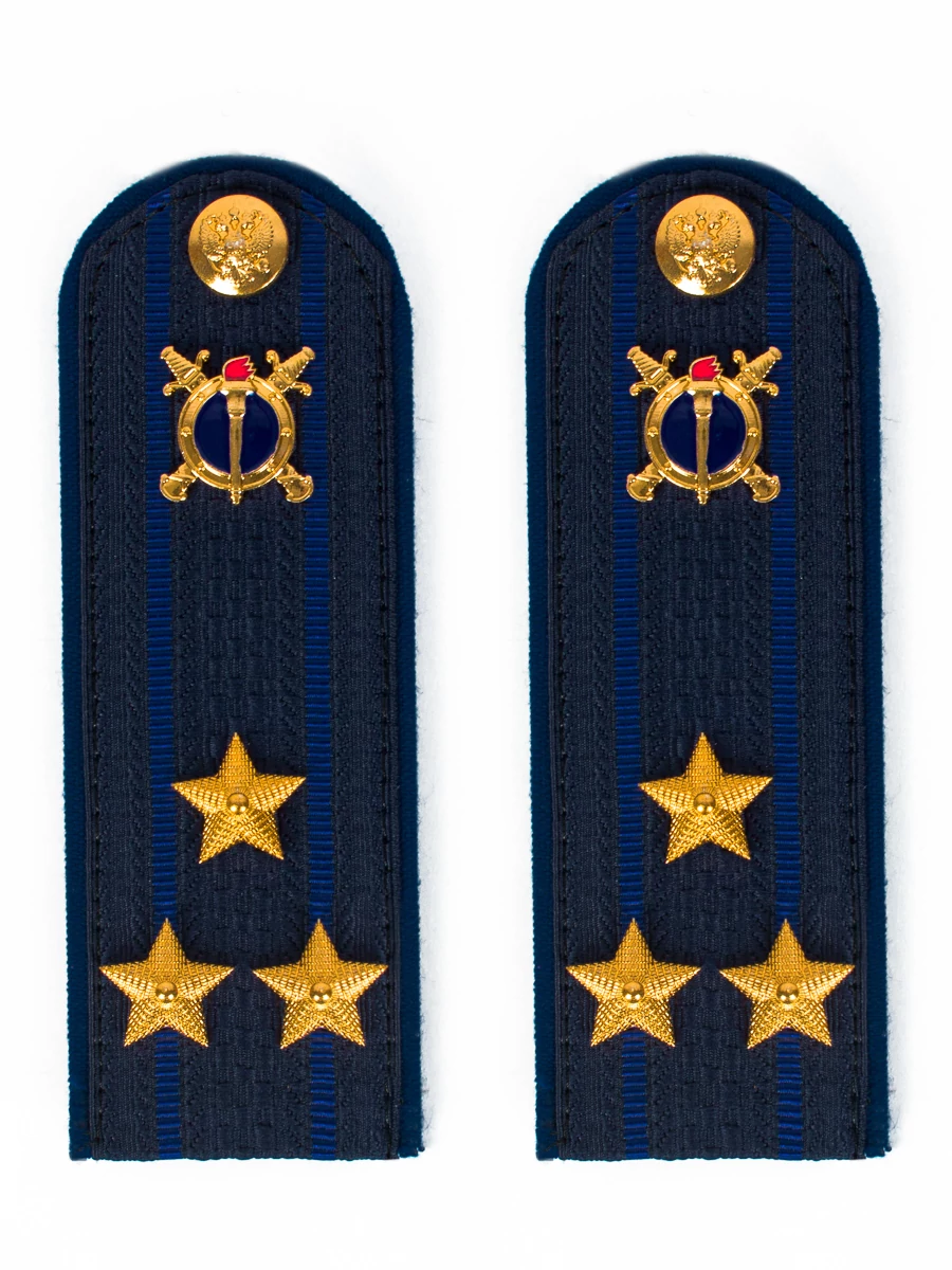 Погоны Юстиции в сборе на куртку картон 12 см звание Полковник. Ткань: 100% полиэстер. Фурнитура: металл латунь. Форма: Полукруг. Погоны идут сразу в сборе с металлической фурнитурой из латуни и застежкой кляммером. Петличная эмблема сотрудников органов внутренних дел Российской Федерации, имеющих специальные звания юстиции, представляет собой золотистое (желтое) изображение круглого щита, расположенного поверх двух перекрещенных мечей в ножнах рукоятями вверх. В синем поле щита - золотистое (желтое) изображение факела с красным отблеском пламени. На оборотной стороне эмблема имеет приспособление для крепления на форме одежды. Размер эмблемы 22 x 22 мм.