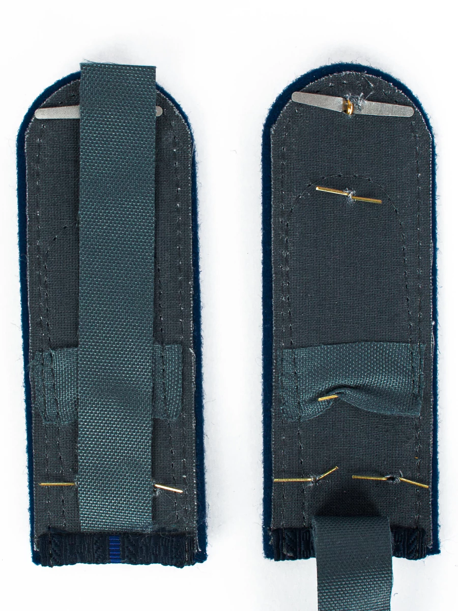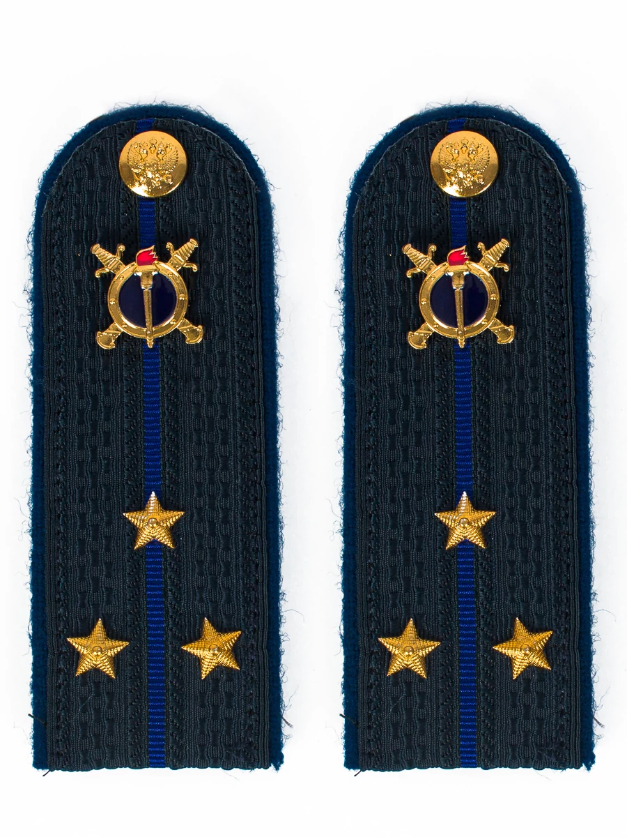 Погоны Юстиции Старший лейтенант синие В СБОРЕ 1 пара. Основа: КАРТОН. Размер: 13см. Ткань: 100% полиэстер. Фурнитура: металл латунь. Форма: Полукруг. Погоны идут сразу в сборе с металлической фурнитурой из латуни и застежкой кляммером. Петличная эмблема сотрудников органов внутренних дел Российской Федерации, имеющих специальные звания юстиции, представляет собой золотистое (желтое) изображение круглого щита, расположенного поверх двух перекрещенных мечей в ножнах рукоятями вверх. В синем поле щита - золотистое (желтое) изображение факела с красным отблеском пламени. На оборотной стороне эмблема имеет приспособление для крепления на форме одежды. Размер эмблемы 22 x 22 мм.