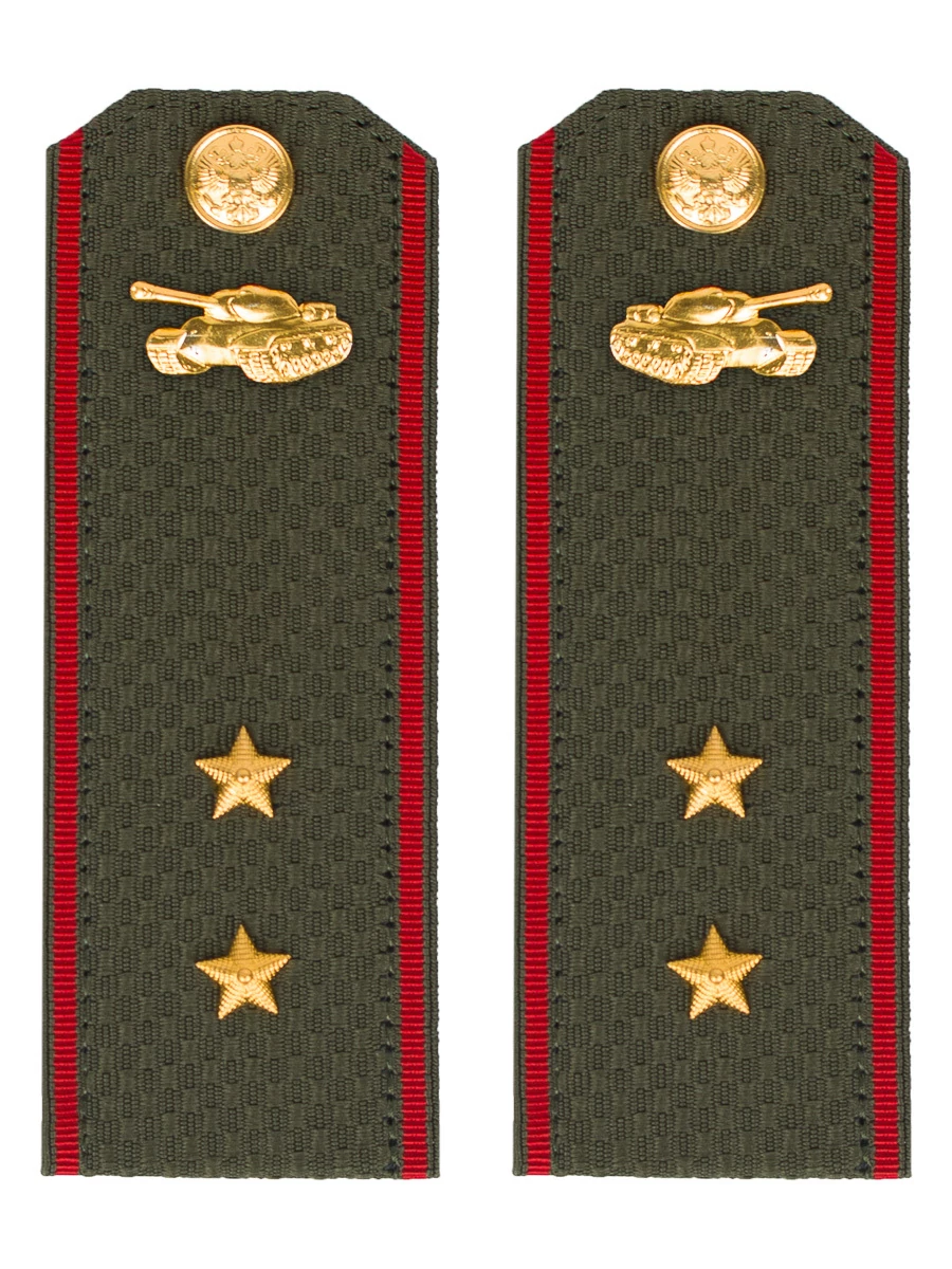Зеленые погоны Министерство обороны Танковые войска звание Прапорщик размер 14х5см. Погоны зеленые ткань жаккард, основа Пластик. Погоны идут сразу в сборе с металлической фурнитурой из латуни и застежкой кляммером. При креплении жестких погон необходимо использовать застежку-кляймер. Необходимо продеть ленту погона в специальные петли на уставной форме.