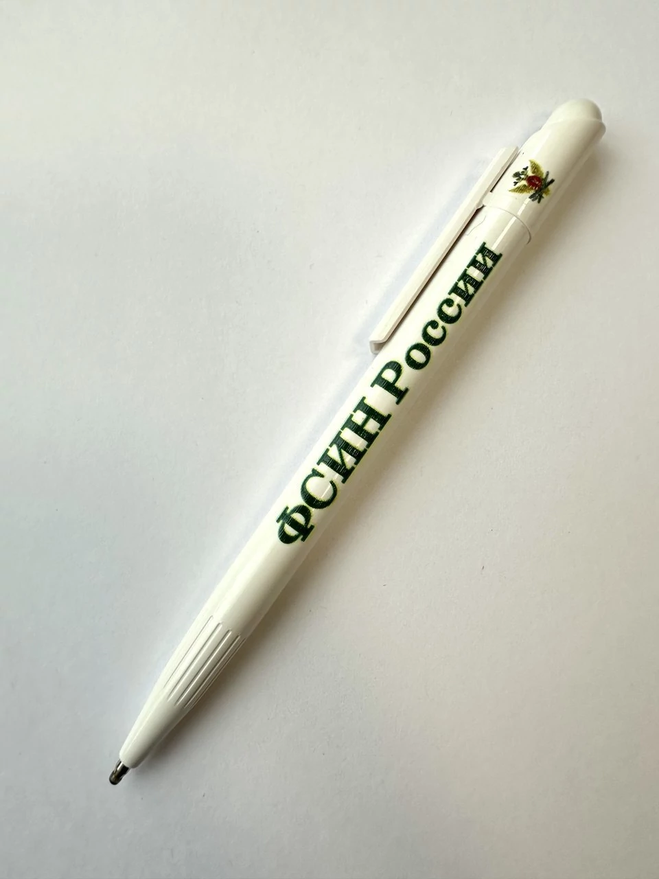 Ручка шариковая с символикой ФСИН России цвет белый (синяя паста)
