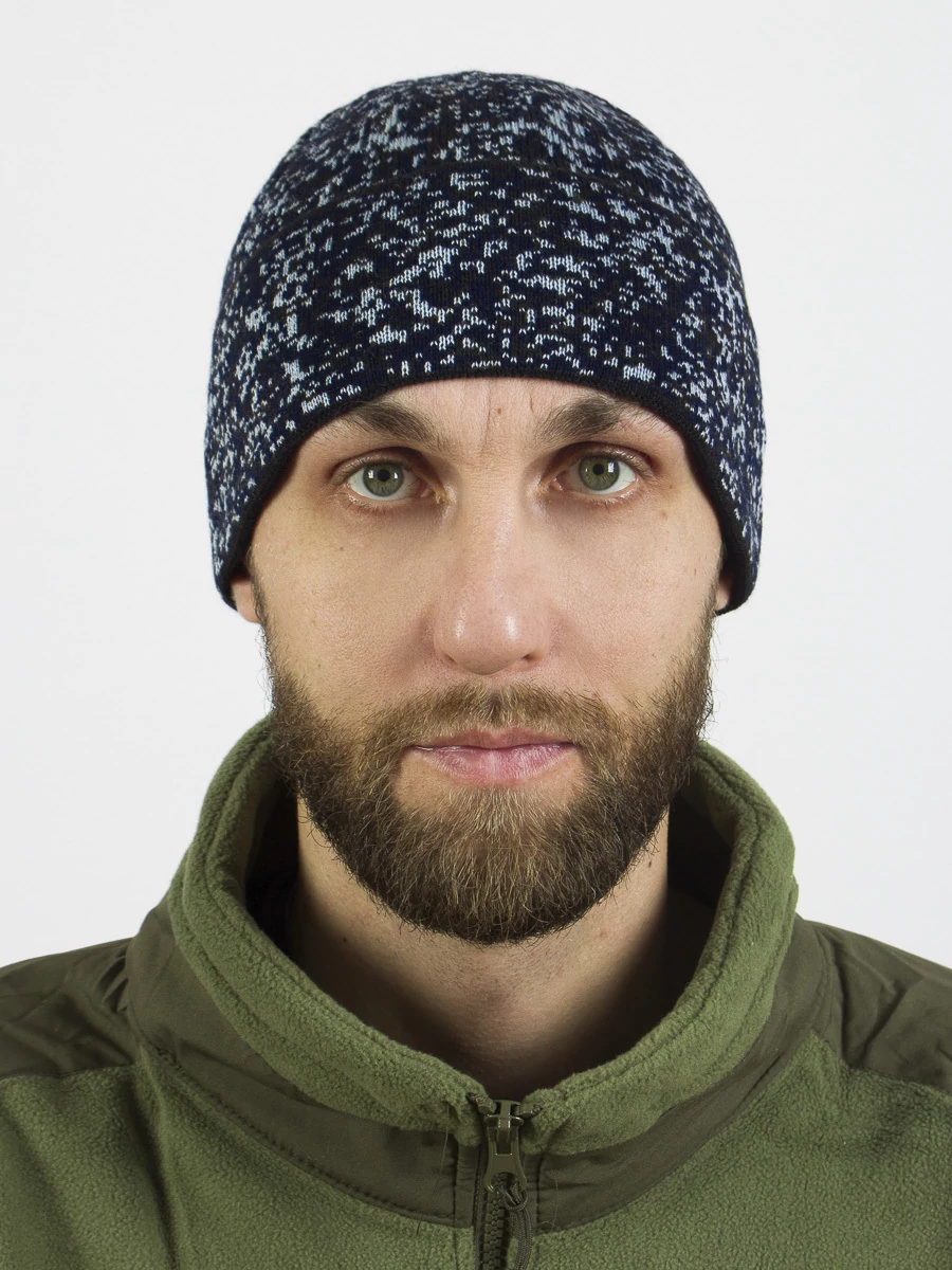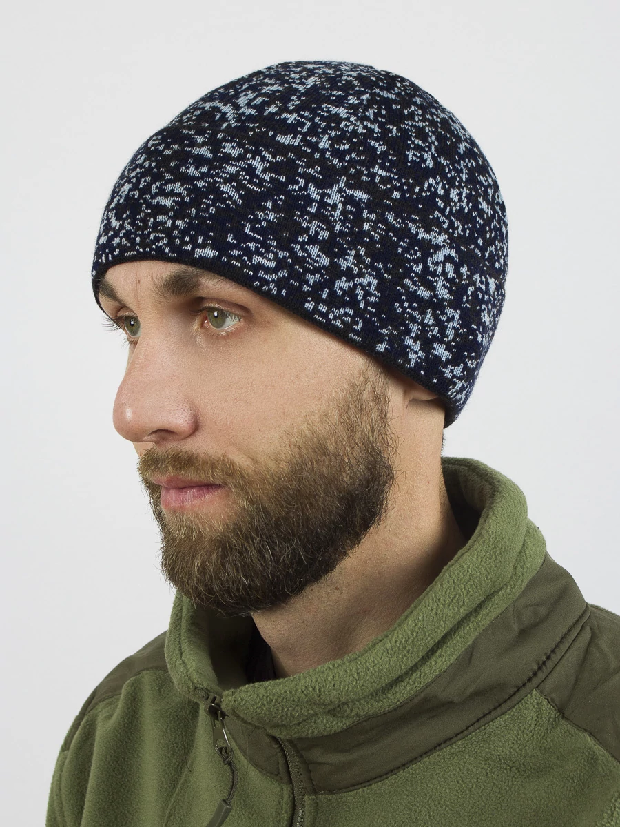 Шапка трикотажная на флисе с отворотом цвет камуфляж синяя точка