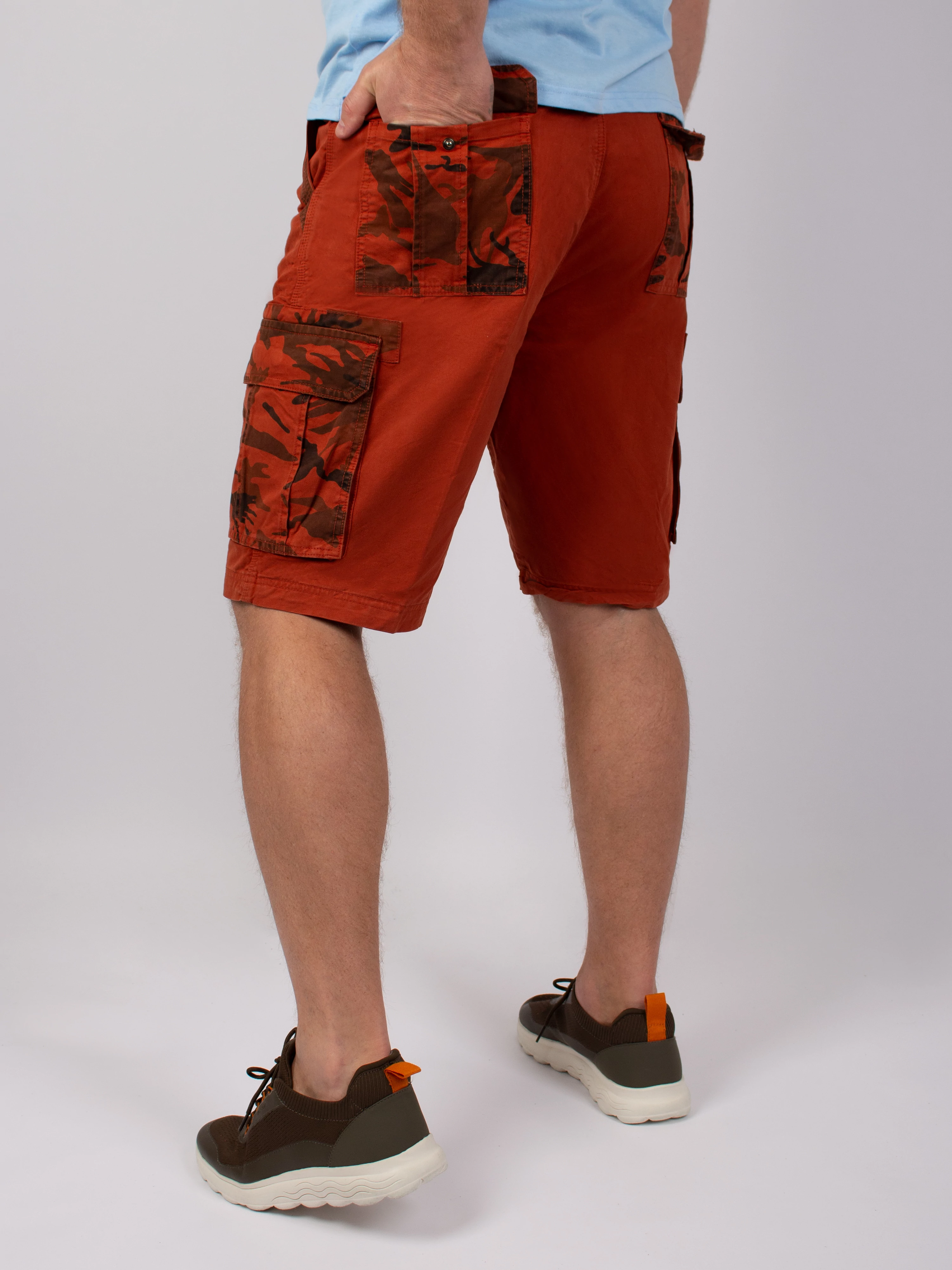 РЕМЕНЬ В КОМПЛЕКТЕ НЕ ИДЕТ. Шорты камуфляжные БЕЗ ремня Воин. Мужские летние шорты для любителей активного отдыха и туризма. Характеристики: Материал: хлопок 97%, спандекс 3%. Тип карманов: накладные; прорезные. Особенности модели: эластичный материал. Пол: Мужской. Традиционные военные шорты - свободная удлиненная модель с крупными накладными карманами. Спереди расположены два кармана с отрезным боком сверху и два накладных набедренных кармана с клапаном на кнопке. Сзади два прорезных кармана с клапаном на кнопке. Ширинка на молнии, сверху пуговица. На поясе пришиты шлевки под ремень шириной до 4,5 см.