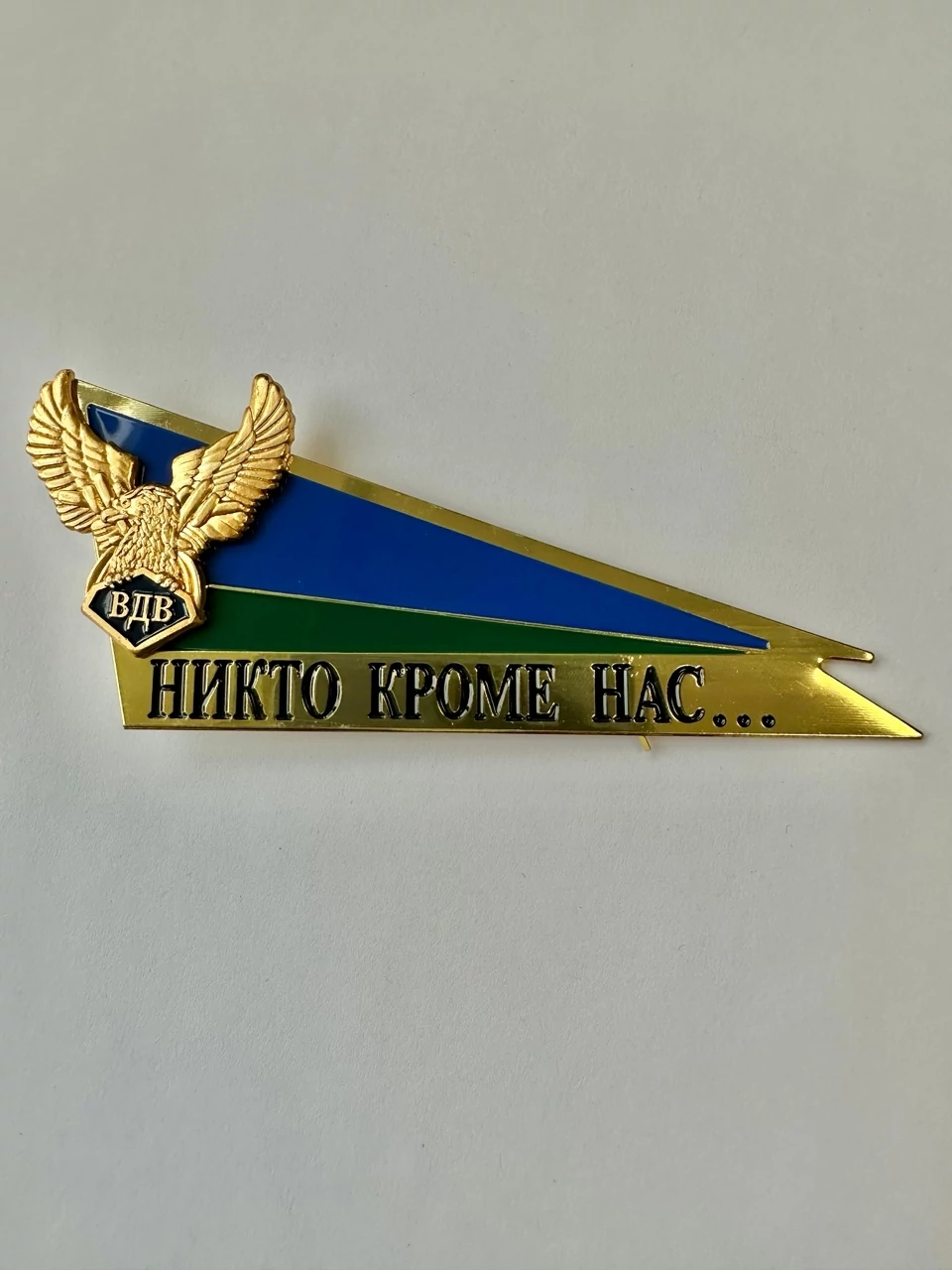 Уголок на берет ВДВ Никто кроме нас. Характеристики: Размер: 12x5 см. Крепление: Винтовое, скоба. Металл, холодная эмаль.